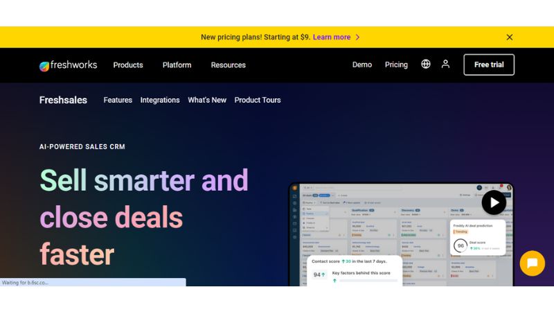 Freshsales is a CRM by Freshworks that focuses on AI-driven insights, automation, and ease of use. It helps sales teams manage leads efficiently and improve productivity.